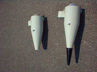 横から風が入り(インレット)、上に気体だけ出て(アクセプト)、下に糠が出ます(リゼクト)。 製材所の外なんかにもでかいのがあるよ。きれいな紙を作るのに、繊維と混ざった石や異物を除去するのも同じ原理だよ。