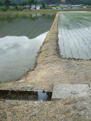 水のわく畦裏に排水用の溝を田んぼの中にこしらえて人もいました。
