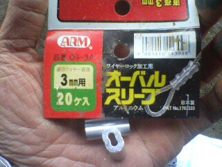 荷締めワイヤーと誤って表記してしまいましたが、正しくは直径3ミリのステンレスメッキのワイヤーを使用しました。すみません。