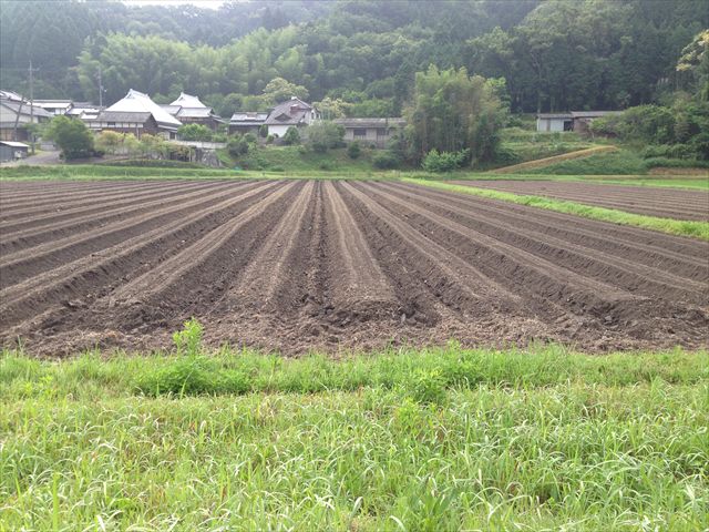 真ん中が低くなったウネの方が、雨が降った時に水がたまりやすくて、